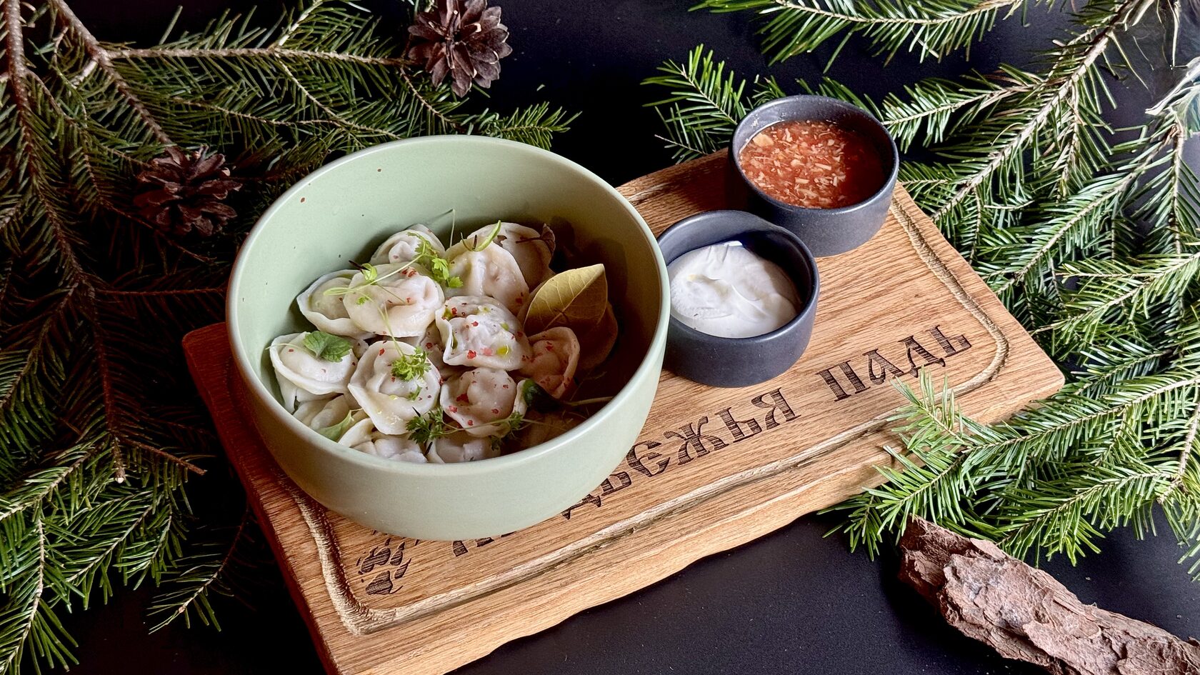 Пельмени из кабана, запеченные в томленой сметане 250 гр цена 525 руб