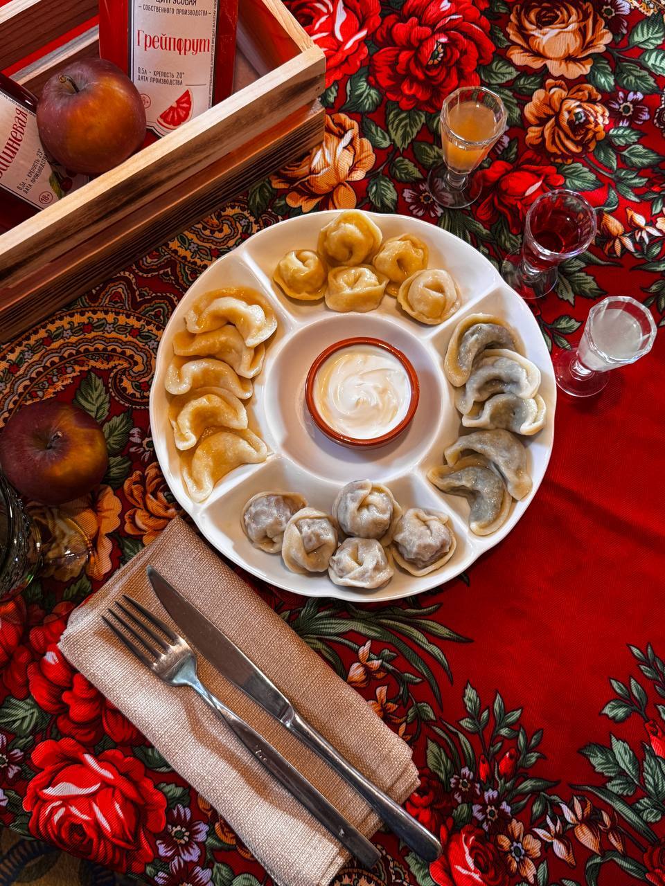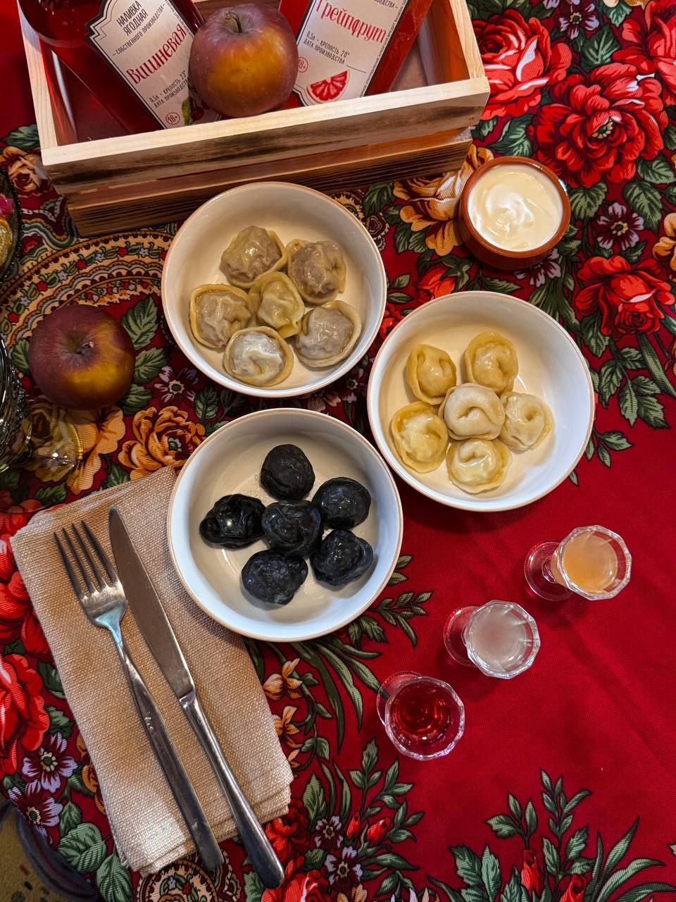 А также все пельмени подаются с рюмочкой наших фирменных наливок — идеальное дополнение к любым пельменям!