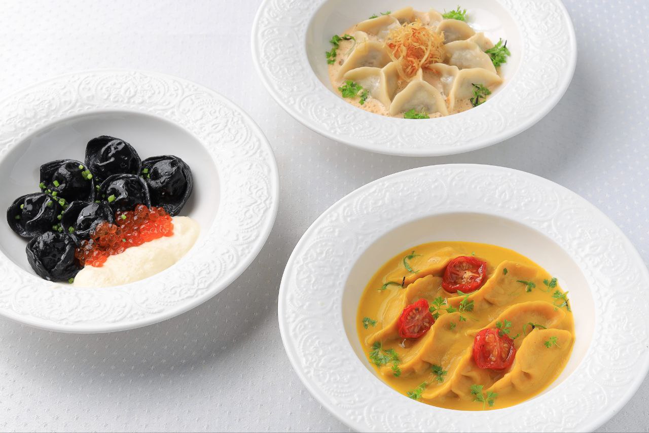 Пельмени из северных рыб на подушке из сливочного мусса с икрой лососёвых пород 795р.